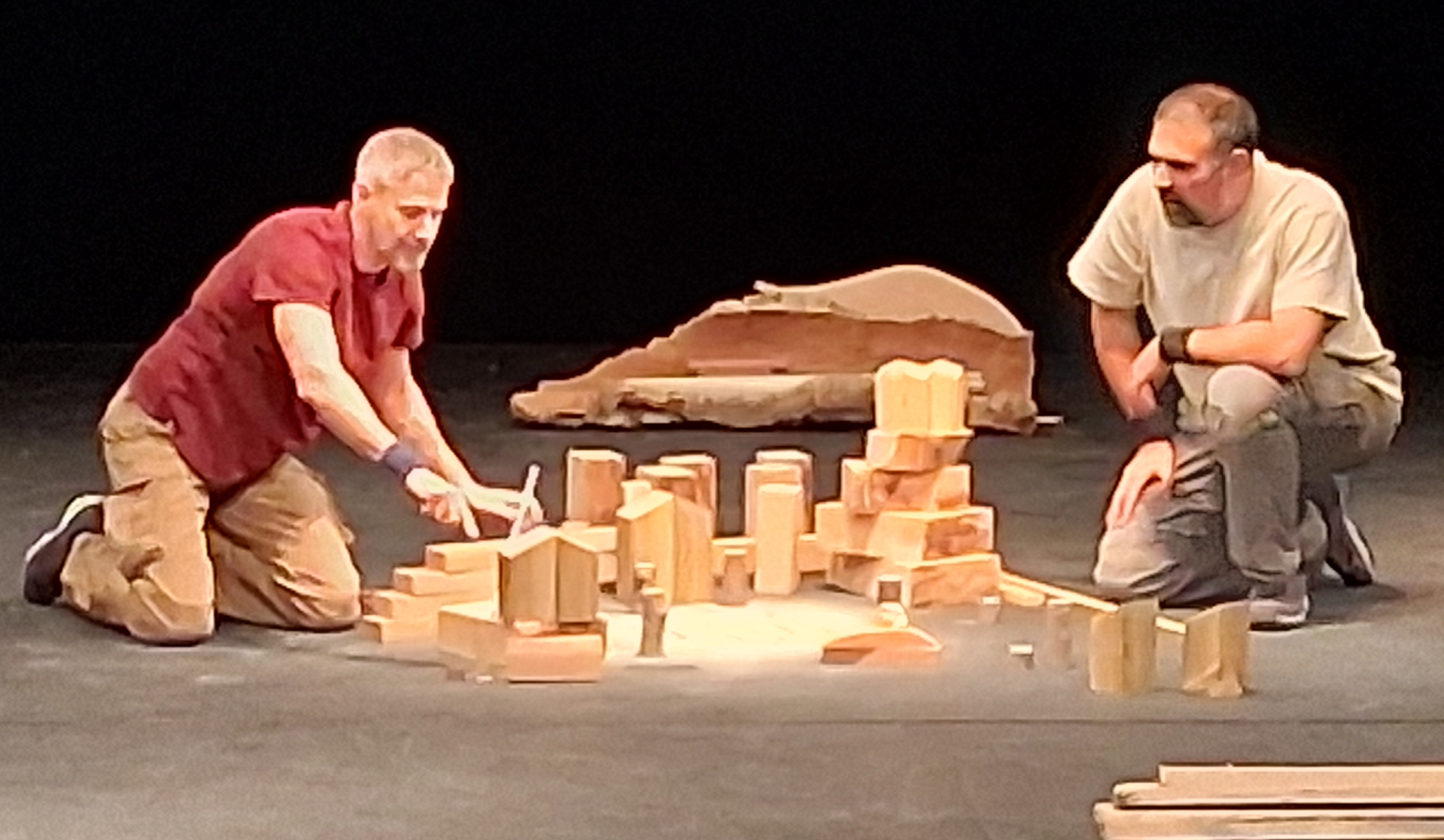 Le spectacle invite à la transformation du monde par le biais de l'imagination, tout en jouant avec des pièces de bois sans une forme préconçue.
